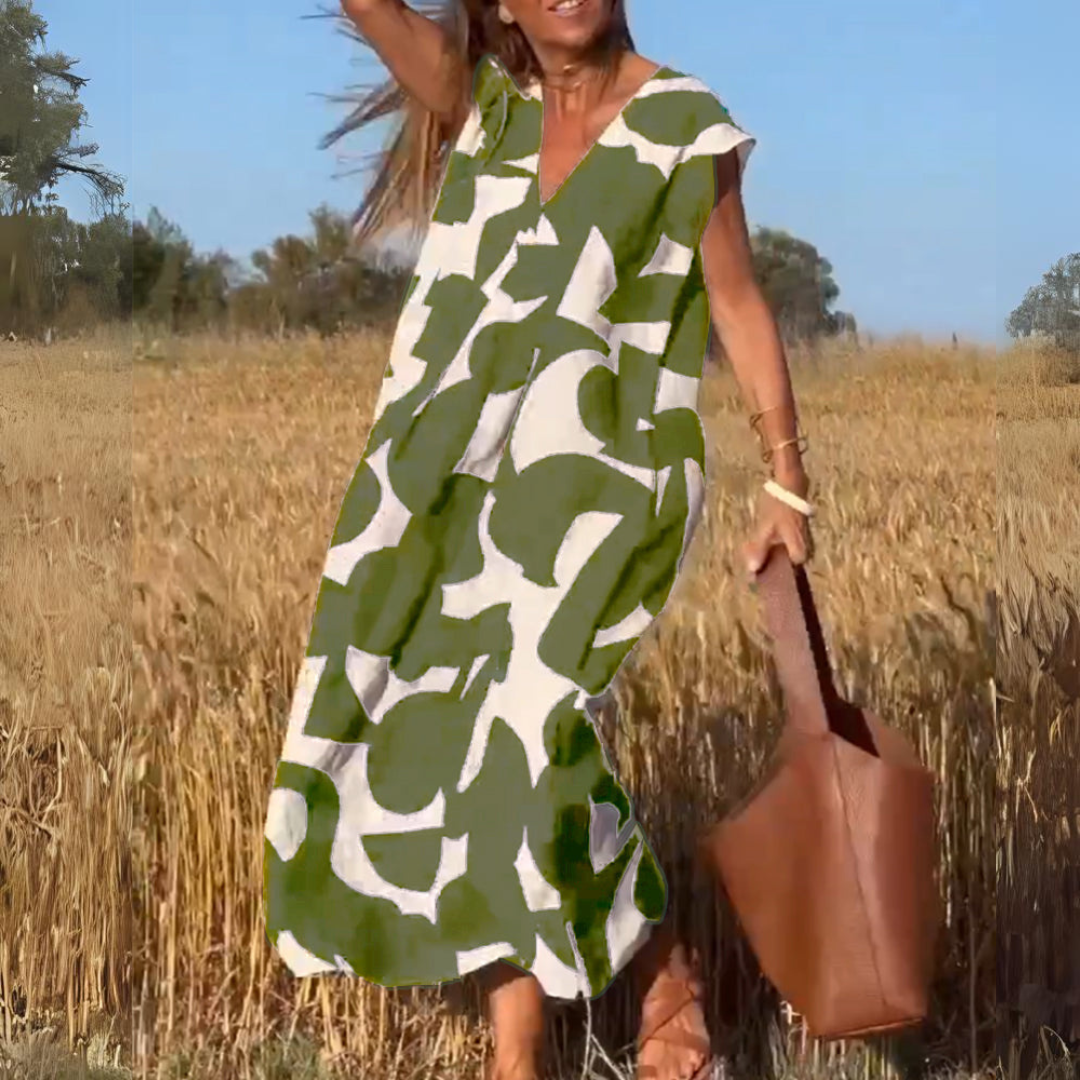 Scopri l'eleganza senza tempo dell'Elena abito stampato con scollo a V, perfetto per le donne che vogliono unire stile e comfort in ogni occasione. Il suo design sofisticato lo rende un capo essenziale nel guardaroba di ogni donna.