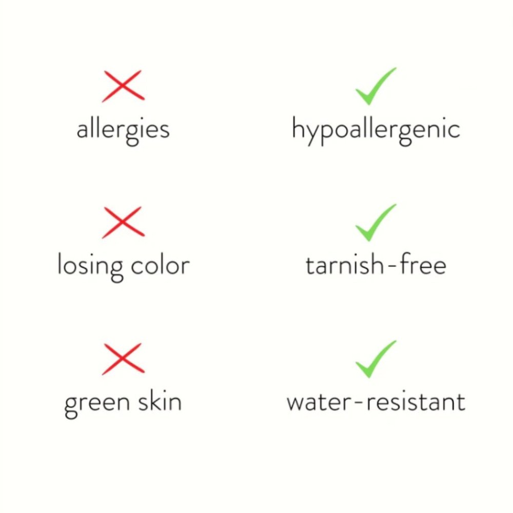 Realizzato in acciaio inossidabile resistente all'acqua, non dovrai più preoccuparti di dita verdi, gioielli che sbiadiscono o si ossidano.