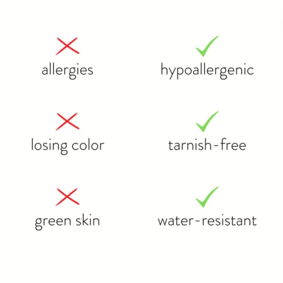Realizzato in acciaio inossidabile resistente all'acqua, non dovrai mai più preoccuparti di sbiadimento o ossidazione dei gioielli.