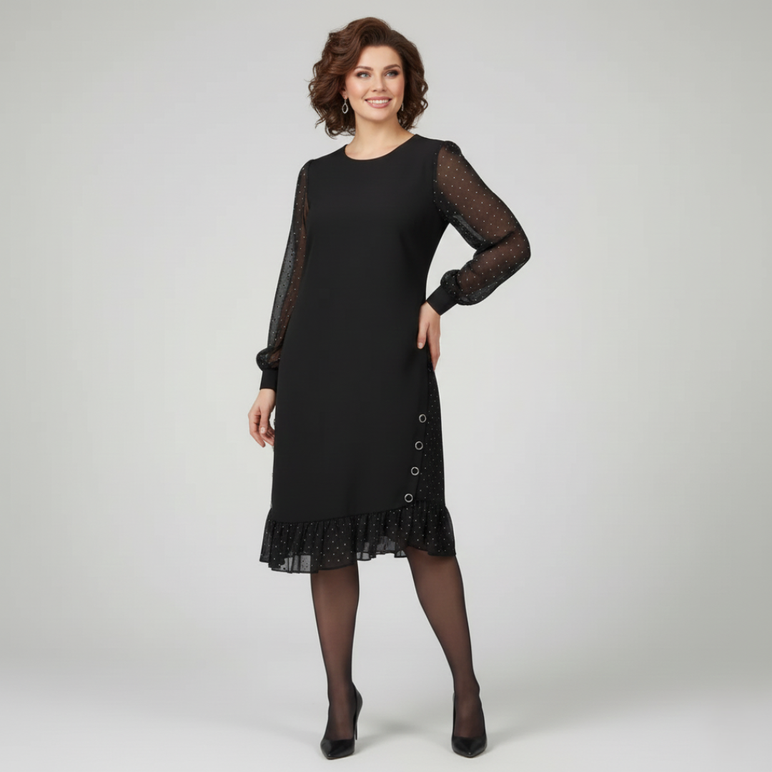 Gianna - Abito Nero Elegante con Maniche Ricamate