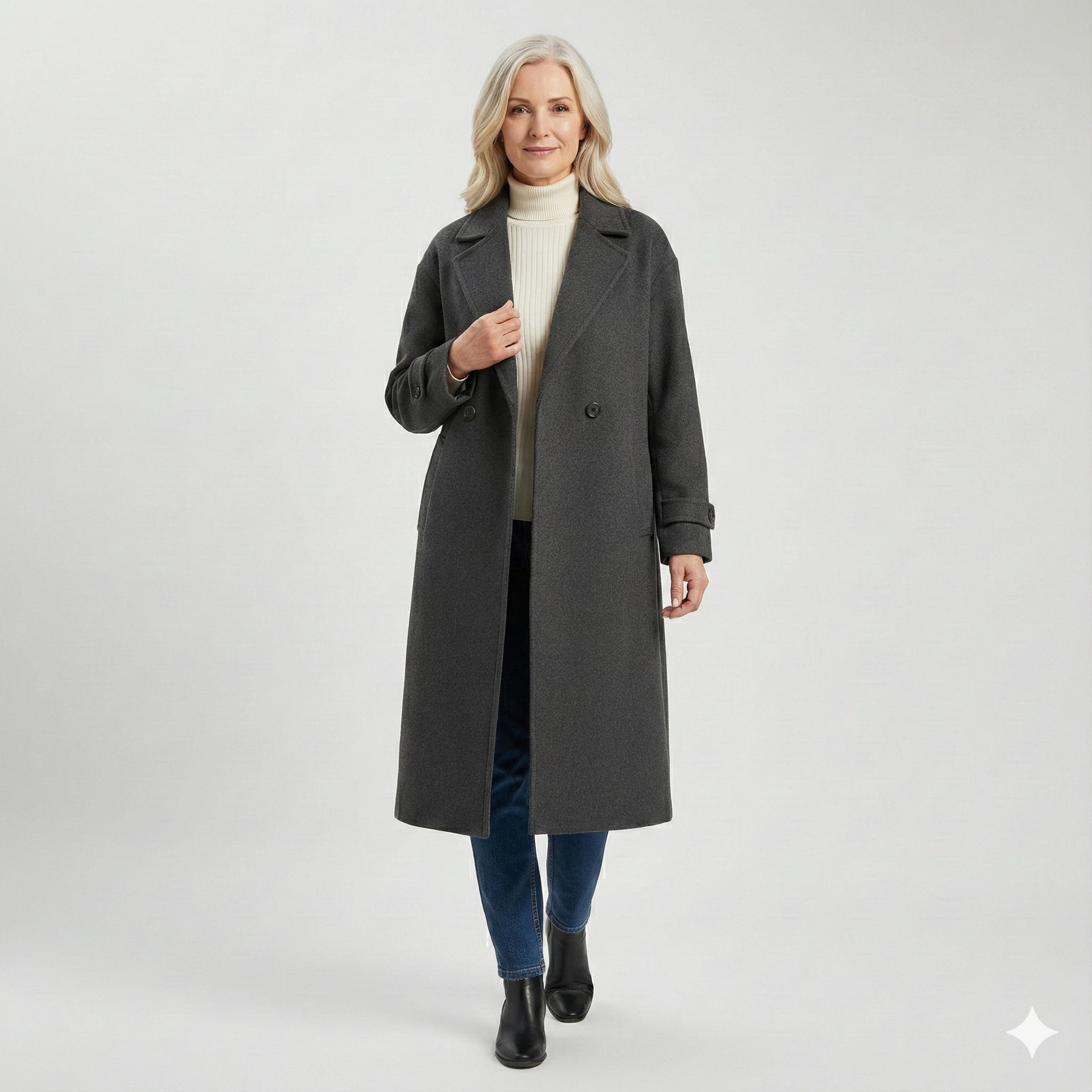 Un cappotto sofisticato e facile da indossare che porta calore, eleganza e fiducia quotidiana al tuo guardaroba. Aggiungi Elora alla tua collezione e abbraccia la stagione con stile.