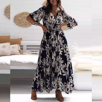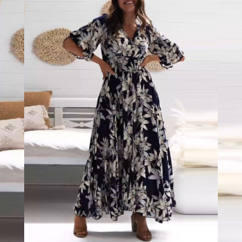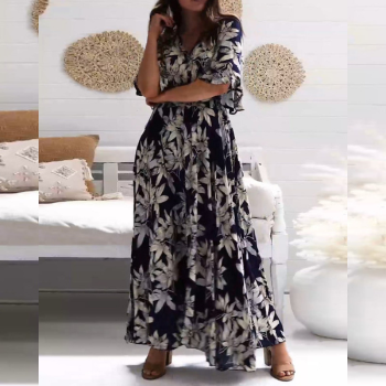 Con una lusinghiera silhouette A-line, un classico scollo a V e splendide stampe floreali, questo maxi abito è perfetto sia per le uscite casual che per le vacanze. Il tessuto leggero assicura un comfort che dura tutto il giorno, rendendolo una scelta ideale per la primavera e l'estate.